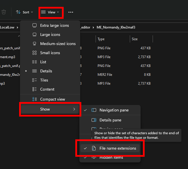 Notice: Make sure to enable "File name extension" in windows file manager, otherwise you won't be able to check if the file format is the correct one.