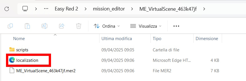 The localization file will be created inside the mission folder. It is possible to open it with a text processor such as Notepad, Sublime Text or Visual Studio.