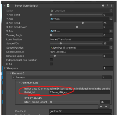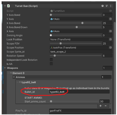 ⢠TurretGunâ WeaponsâAmmosâBullet_id